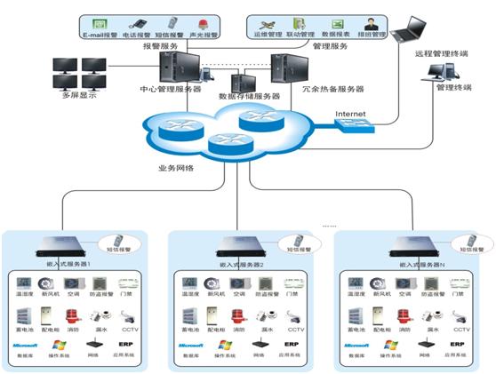 伊能機房監控系統根據用戶對各機房統一管理的需求,能對各不同類型的設備實現集中監控,包括對機房動力系統(包括發電機、配電柜和UPS等)、環境系統(機房精密空調、非精密空調、漏水檢測、溫濕度監測等)、安防系統(門禁、入侵報警等)。實現了機房設備的統一監控,智能化實時語音電話報警,實時事件記錄;減輕機房維護人員負擔,有效提高系統的可靠性,清楚處理各種事件關系,實現機房可靠的科學管理。